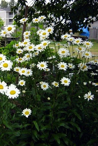 DAISY: Daisies are all-time favorites for the perennial border. The cheery flowers begin to appear in late spring and continue on for several months if faithfully deadheaded. A plant that is easily grown in average, well-drained soils in full sun. Good drainage is essential for this plant! Unsurpassed in the border and for cutting. Give them a sunny spot and a balanced plant food in the spring and once again when buds form. Remove flowers as they fade to promote further bloom.