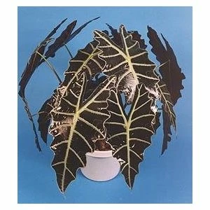 African Black Shield Plant (Alocasia x amazonica) is a beautiful member of the Elephant Ear family. It makes a wonderful addition to any tropical landscape. They may be container grown indoors or out, provided they have bright, but not direct sunlight. A. amazonica will grow to 18 – 22 inches tall and produce new shoots periodically, creating a dense cluster in no time. A 20-20-20 soluble is the best fertilizer for them, once per month. As with all elephant ears, they do not take well to cold weather and may die back to the soil line, but will come right back as soon as the temperature warms. If ground freezing in your area is common, we suggest keeping A. amazonica in containers, in-ground and removing them when an overnight freeze is imminent. They do not like to dry out or be too wet, keep evenly moist, not wet or dry! Alocasia amazonica will live indefinitely in containers if proper care is given and is an excellent indoor plant. The plant you will receive is growing in a 4″ pot and is about 6″ tall with multiple leaves and stems.