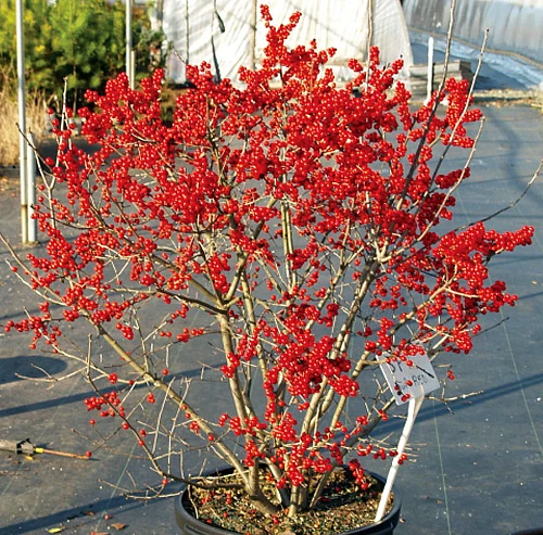 (Winterberry Holly) Berry Poppins™ Ilex means berries poppin’ everywhere! You want the berries for color in your winter landscape, but don’t have room for traditional Hollies? Then we suggest giving Berry Poppins™ a try. This compact variety stands 3-4 foot tall and wide, staying very tidy for a compact garden. Bountiful masses of large, bright, orange-red berries are produced for a colorful winter display. The leaves of Berry Poppins™ drop early in the season producing a better fruit display. Ilex grow best in a full sun to part shade location. The berries will attract songbirds and make a great addition to cut floral arrangements. Use Mr. Poppins™ as the male pollinator for he to is a compact shrub. A Proven Winners® ColorChoice® Flowering Shrub. Berry Poppins™ Ilex verticillata ‘FarrowBP’