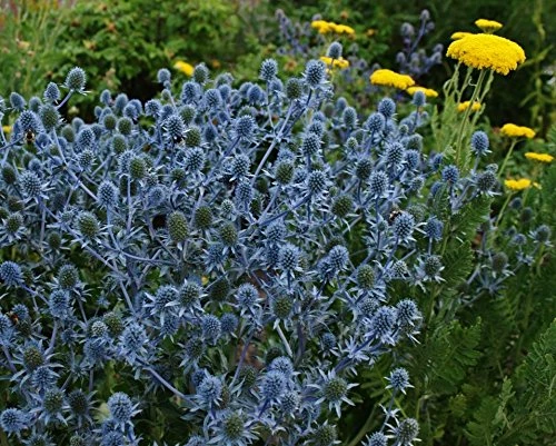 First true dwarf Sea Holly, forms low rosettes of deeply toothed blue-green leaves, colorful silver blue stems and darker blue flowers with spiny blue bracts add a unique color and texture to the garden.