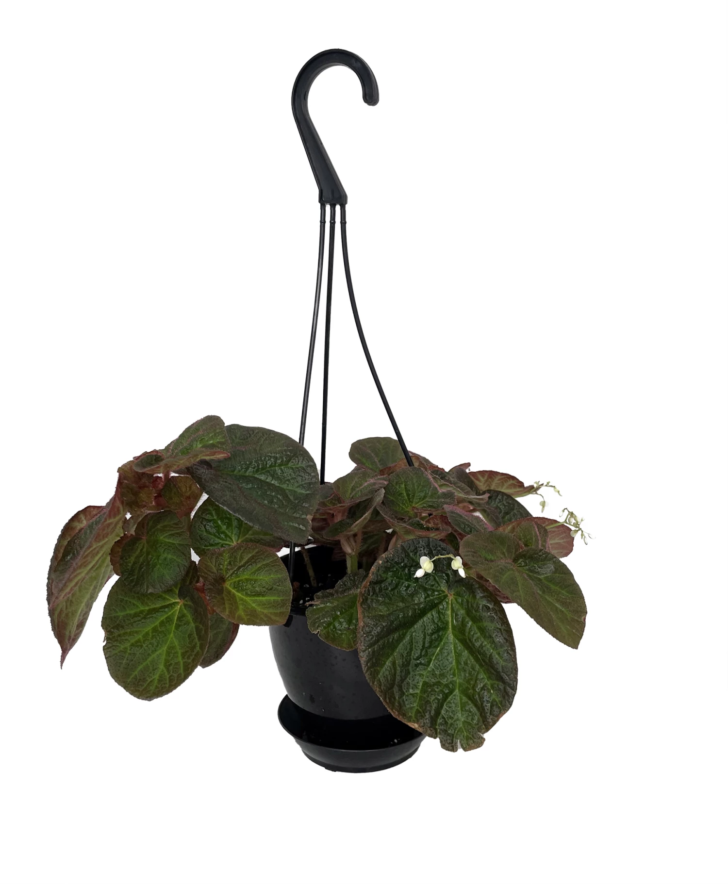Begonia ‘Manaus’ is a hybrid of two Brazilian species. The parents are B. ‘soli-mutata’ and B. thelmae. It has characteristics of both parents. It has the trailing growth habit of B. thelmae but the shape, texture and color is more like a mix of both parents. It has tiny white flowers. It does better with a little extra humidity and does very well in a terrarium.