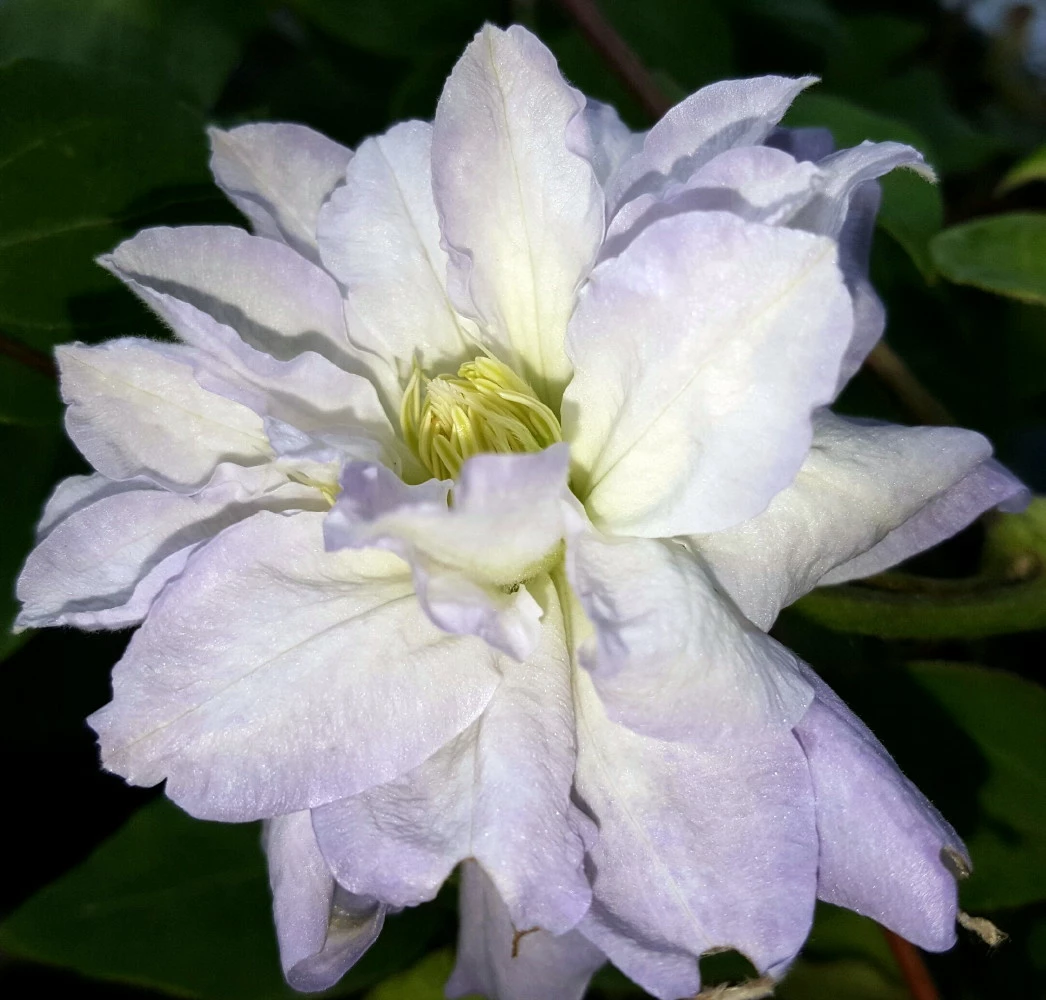 The cool white-blue flowers are round or semi-spherical in shape, and reach 4-5″ in diameter. This prolific bloomer flowers on both old and new wood, and blooms from June through August.