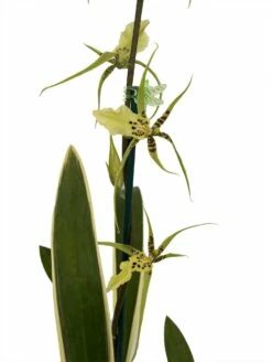 Brassidium Gilded Urchin ‘Ontario’ is the distinguished cultivar of a primary hybrid (Brs. arcuigera x Onc. wentworthianum) that produces elongated yellow flowers with a brown speckled center. Long spindly blooms have earned this genus the title of “spider orchid”. A rewarding orchid perfect for beginners. Blooming Size.