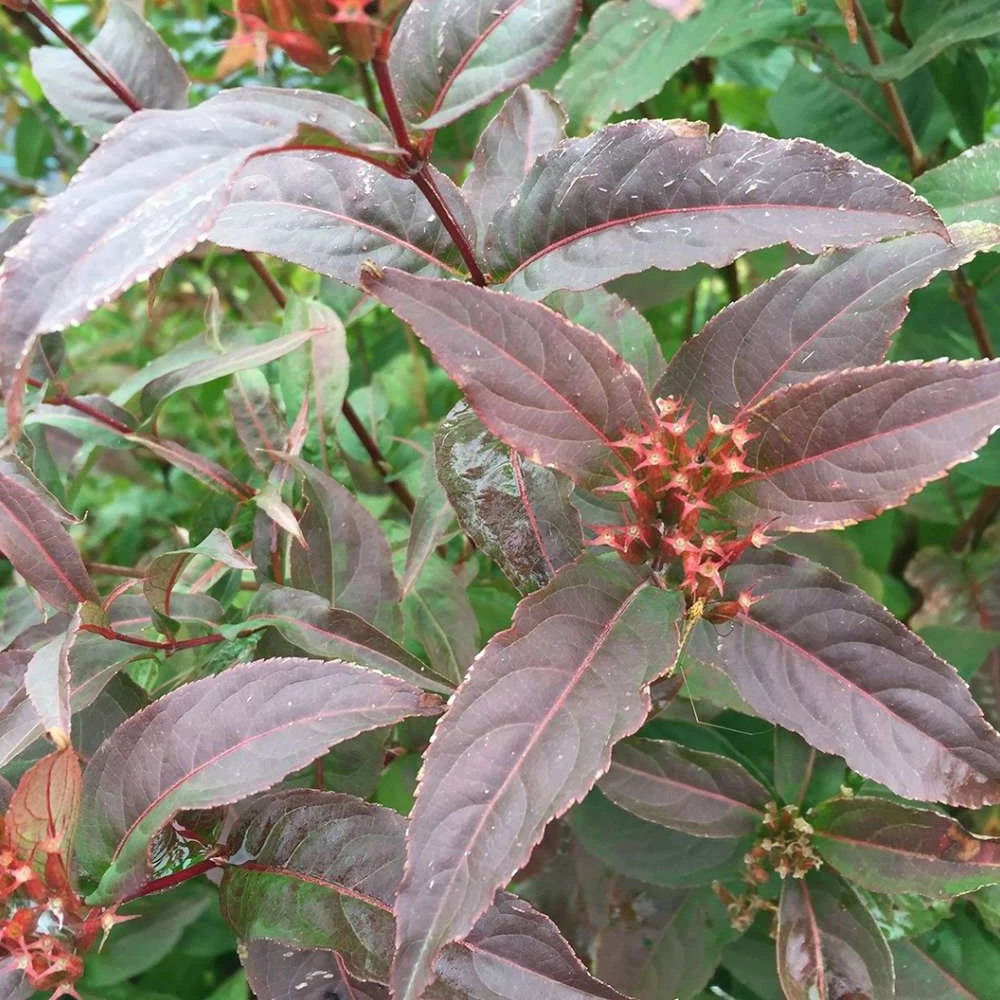 Blazing color on a native plant. The newest addition to the Kodiak® diervilla series, Kodiak® Red diervilla offers attractive red spring and autumn foliage, with red tones on new growth all summer long. Bright yellow flowers appear from late spring through fall. This fast growing, vigorous North American native is unbothered by pests or diseases. Sometimes known as bush honeysuckle, which is a bit of a misnomer, so we prefer using diervilla as the common name.