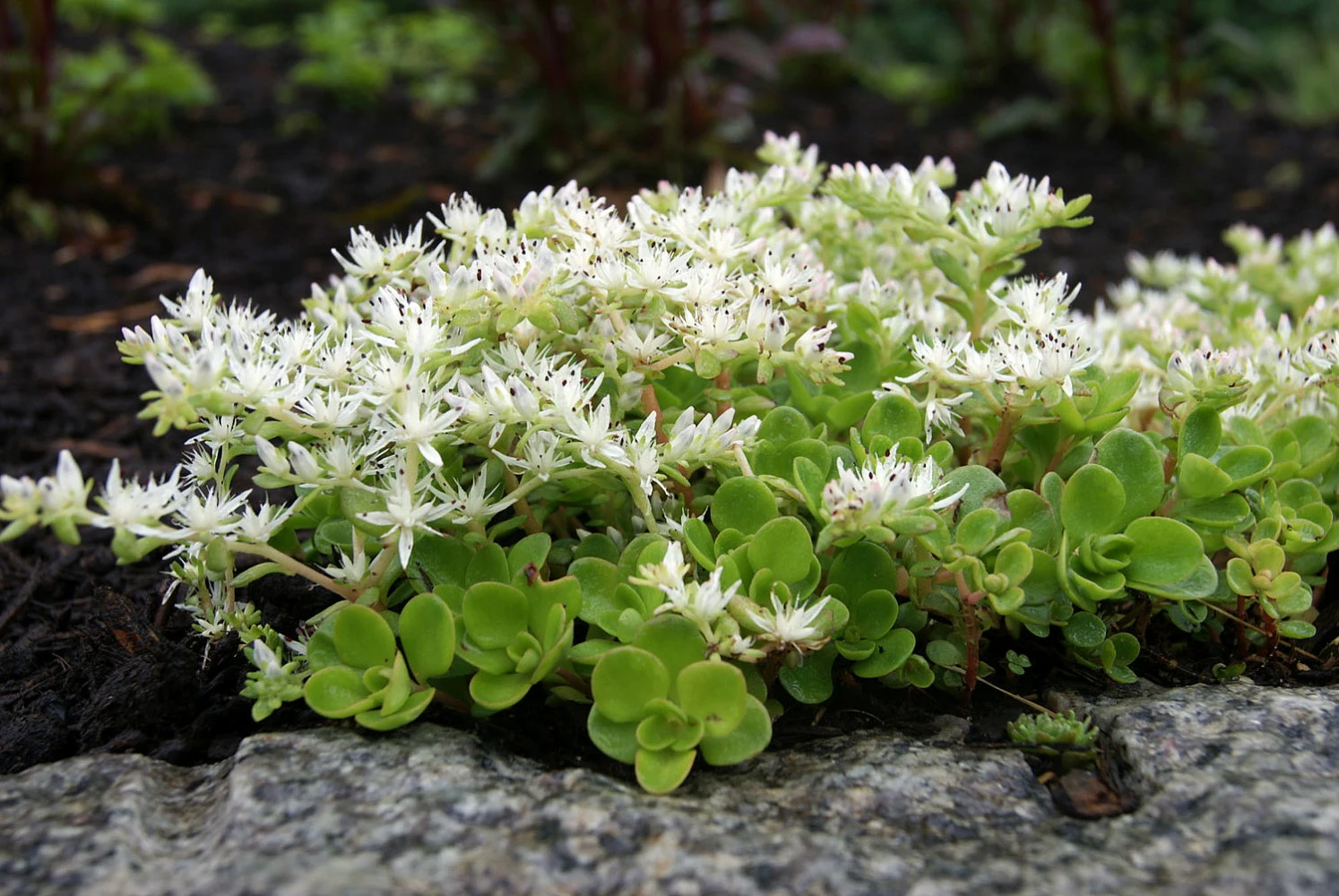 SEDUM: An excellent rock-hardy plant! Flowering late spring and summer. They enjoy full sun, but some shade is OK. A reliable, hardy and easy to grow perennial, Sedums provide color and interest to your garden from spring to the first snow of winter.