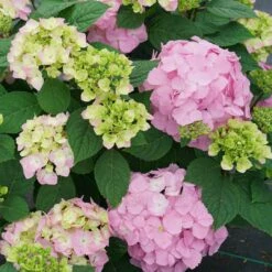 Let’s Dance Sky View hydrangea hybrid (H. macrophylla × serrata) is a standout for consistent, yearly blooming, whether you grow it in Michigan or Florida. Selected from our extensive Let’s Dance® hydrangea breeding program for its ability to not only conserve its old wood buds in the face of weather challenges, but also its ability to continue creating new flowers. You’ll also love how easy this cultivar is to turn blue, which is what we recommend since it’s so spectacular this way: flowers emerge a beautiful soft blue with a honeydew-green eye before maturing to a full sky blue. Its nice compact growing habit makes it both a good container and garden plant.