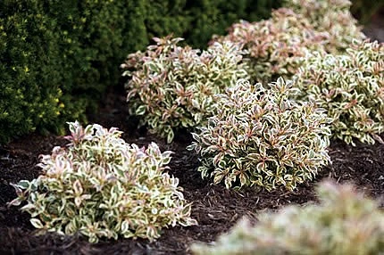 One of the most magnificent sights in the spring garden, this new cultivar is the finest dwarf variegated Weigela we have ever seen. It deserves a place of honor in your sunny to partly shaded garden, as well as in containers for up-close enjoyment.