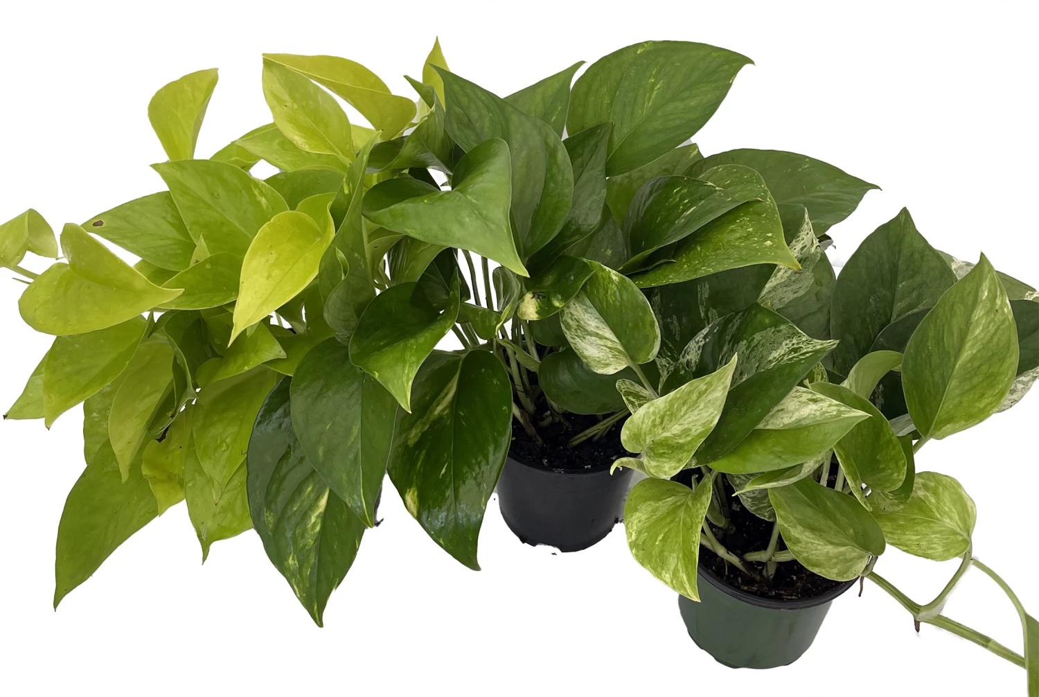 Pothos is the ultimate in beautiful, easy care houseplants! Their leaves can range anywhere from a solid medium green to some cream and lightly variegated stripes depending on the light conditions. They have an incredible vining habit that will slowly crawl up a wall if you have it in a window, or hang it in a basket and let the foliage elegantly tumble down. They do best in medium to low light and only require watering when the top inch of soil gets dry. They tolerate lack of air circulation in homes, offices, and even bathrooms!
