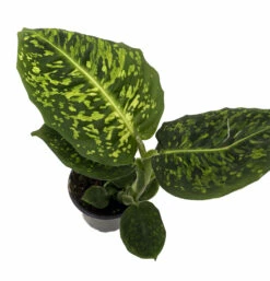 Dieffenbachias are easy to grow houseplants. The thrive under normal house conditions. They prefer bright, indirect light. Keep evenly moist not wet or dry. Mature height is up to 6 feet. Keep out of hot or cold drafts and never allow the plant to stand in water.