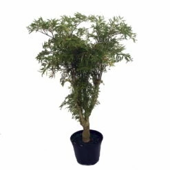 The naturally twisted stems and fernlike foliage make this Ming a true Asian treasure. Let its natural Bonsai-like appearance add a touch of the Orient to your home. Display this plant in bright light but protect from the hot sun. Keep evenly moist, but not wet or dry. Do not allow the plant to stand in water. Normal house temperatures are fine. Trim as needed. Makes a great house plant or bonsai!
